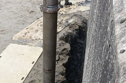 Another specialist project to assist one of our civil engineering clients in excavating an existing sheet pile sea wall for repair works