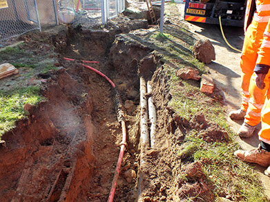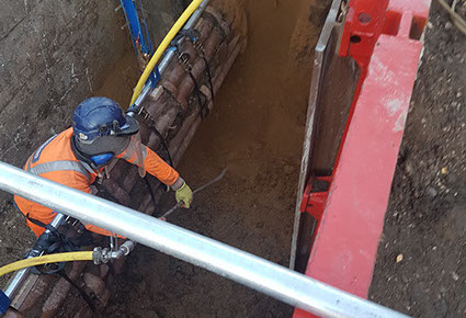 In conjunction with other activities in the water industry, our specialist excavation capabilities are called upon when traditional track or machine excavation equipment is deemed too high risk, or simply isn’t capable of working through trenches with heavily congested services and the alternative option is labour intensive manual digging